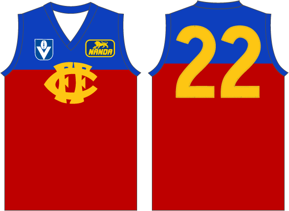Maroon lightened to Red, Lion logo sat across the yoke